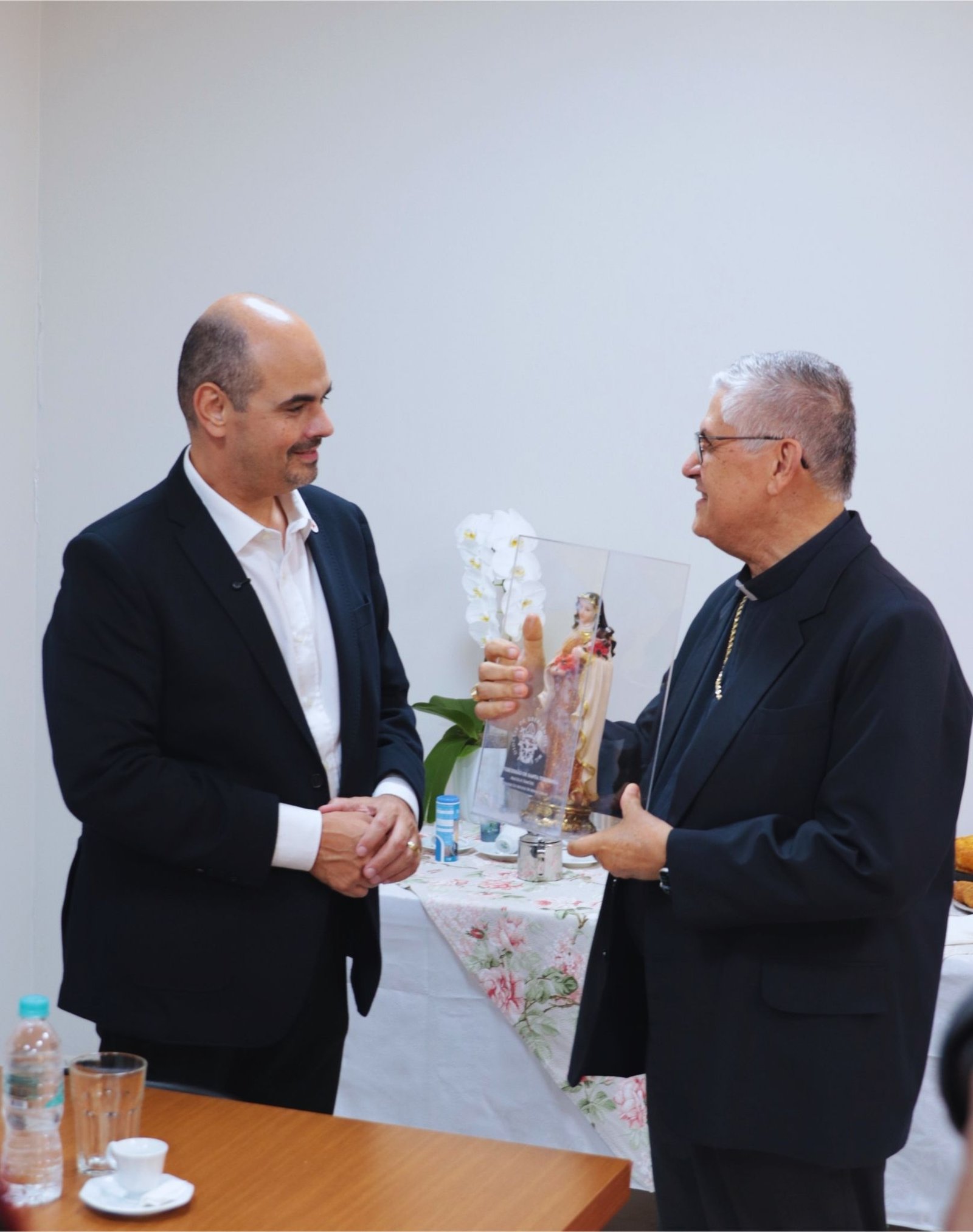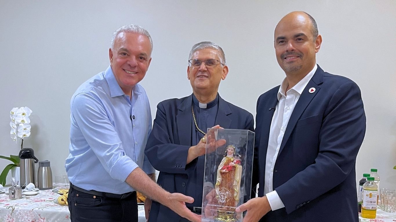 Ao final, Dom Paulo Francisco presenteou o governador com uma imagem de Santa Teresinha do Menino Jesus, padroeira da Diocese de Uberlândia, rogando sua intercessão pelos trabalhos e pela missão pública em favor do povo mineiro. Inspirados pelo testemunho de Santa Teresinha, o gesto recordou que o amor se revela também nas pequenas ações feitas com grande fé e dedicação.
