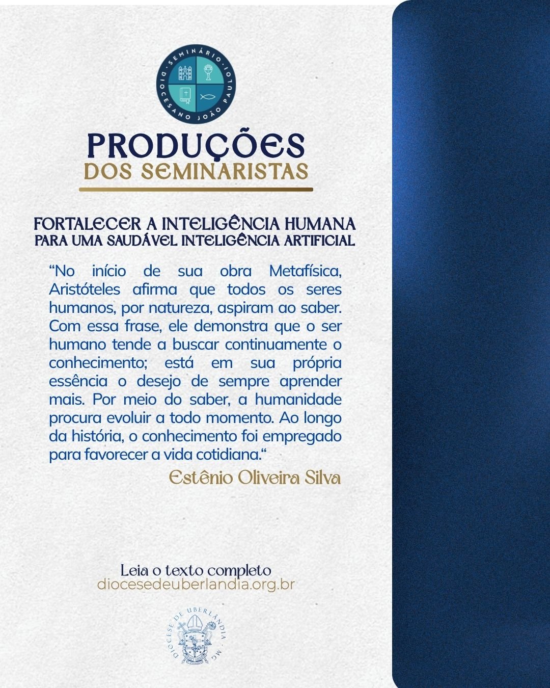 Portanto, tornar o ser humano melhor, segundo São João Paulo II, é fazê-lo “mais maduro espiritualmente, mais consciente da dignidade da sua humanidade, mais responsável, mais aberto aos outros, especialmente aos mais necessitados e aos mais frágeis”. Esse trecho tem um teor mais teológico, mas contém também profundas lições filosóficas. Por quê? Porque nos convida a refletir sobre nossa humanidade diante do impressionante avanço da Inteligência Artificial no mundo contemporâneo.